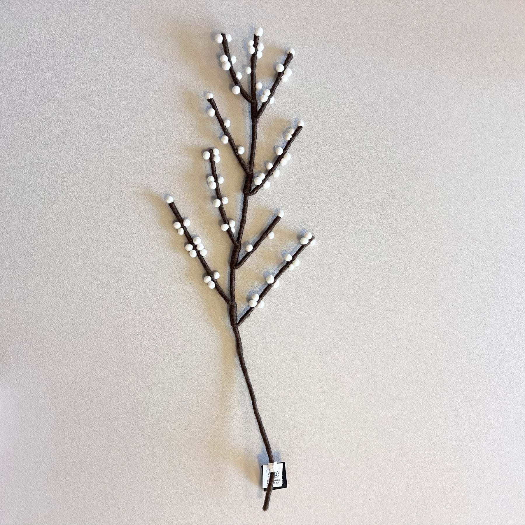 Lang gren med hvide bær til dekoration.