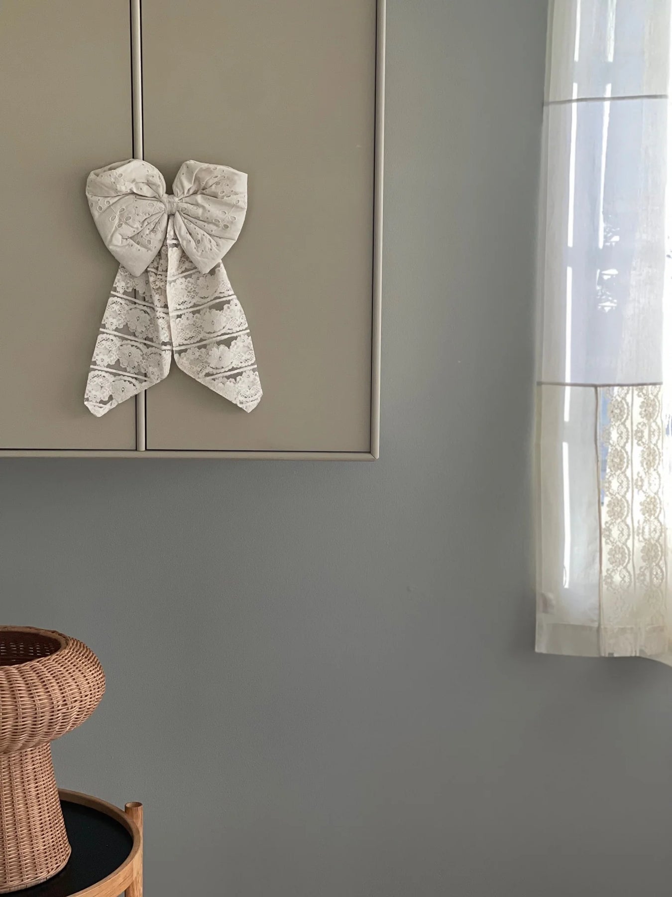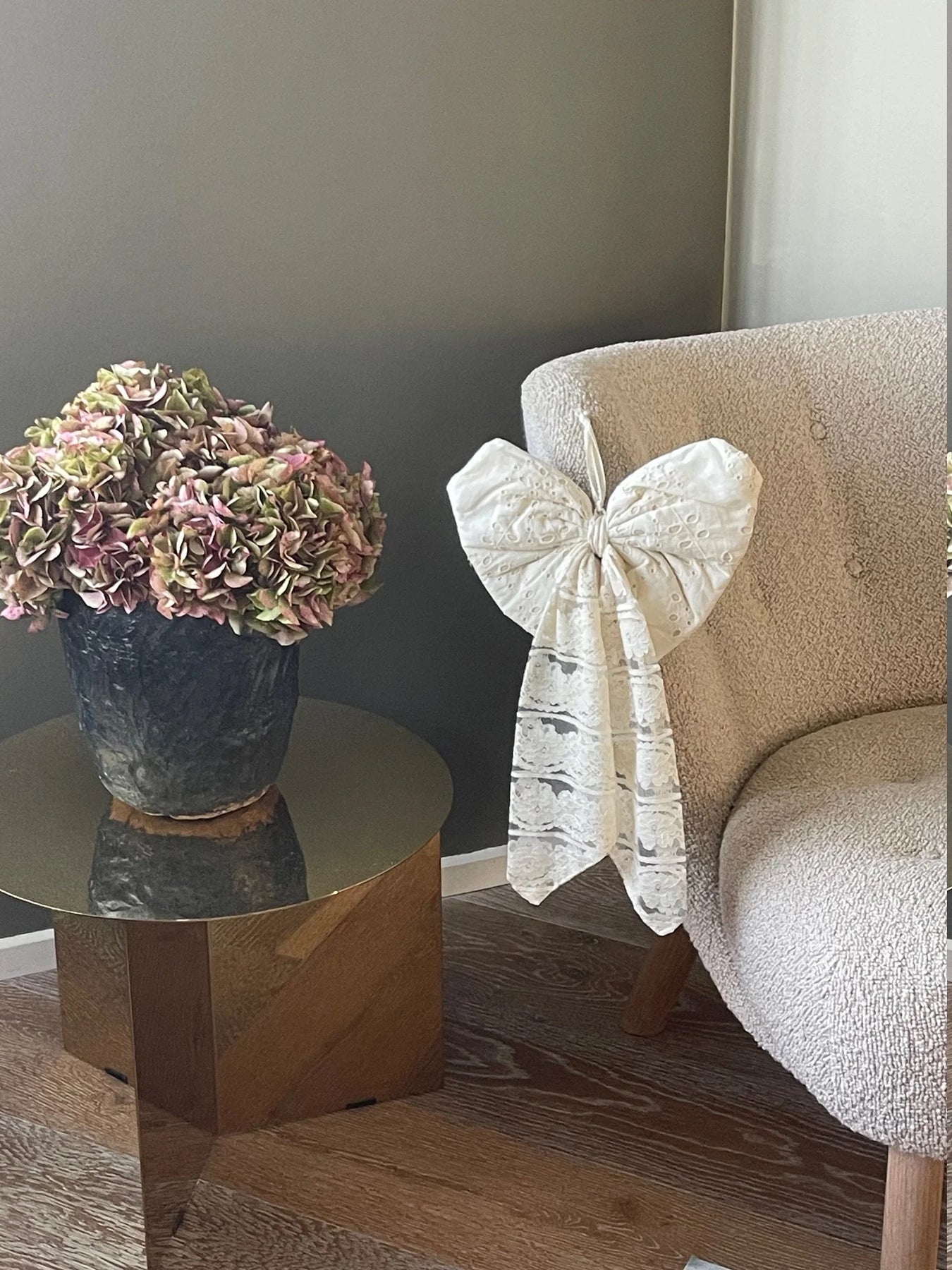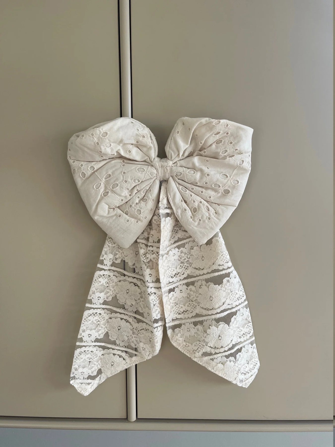Fin hvid blondesløjfe fra Jou Quilts, perfekt til julestunder.