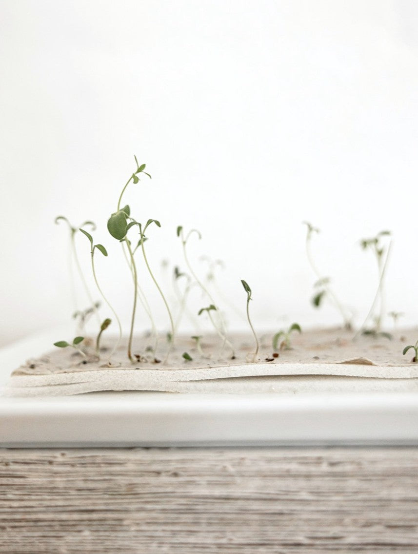 Når du planter papiret, opløses det og frøene begynder at spire.