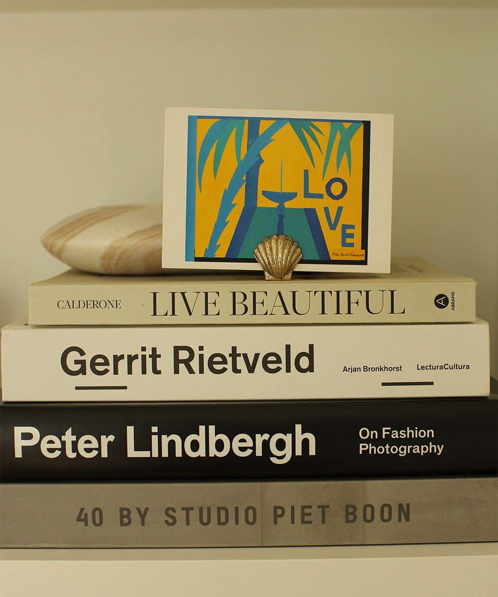 Fin postkortholder i gyldne toner fra Doing Goods!